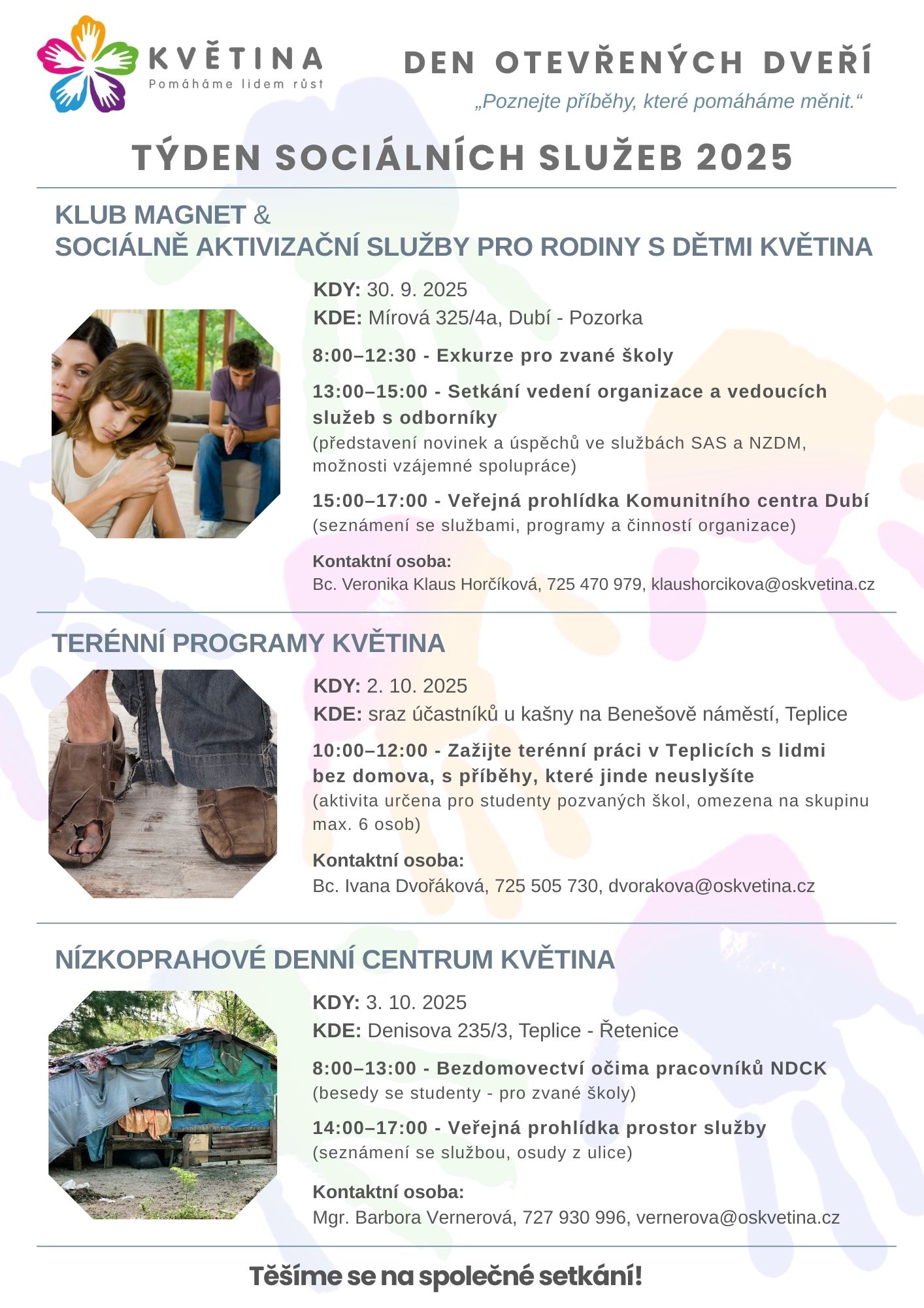 V rámci Týdne sociálních služeb se uskuteční Dny otevřených dveří ve službách organizace Květina, z. s.. Bližší informace v příloze.